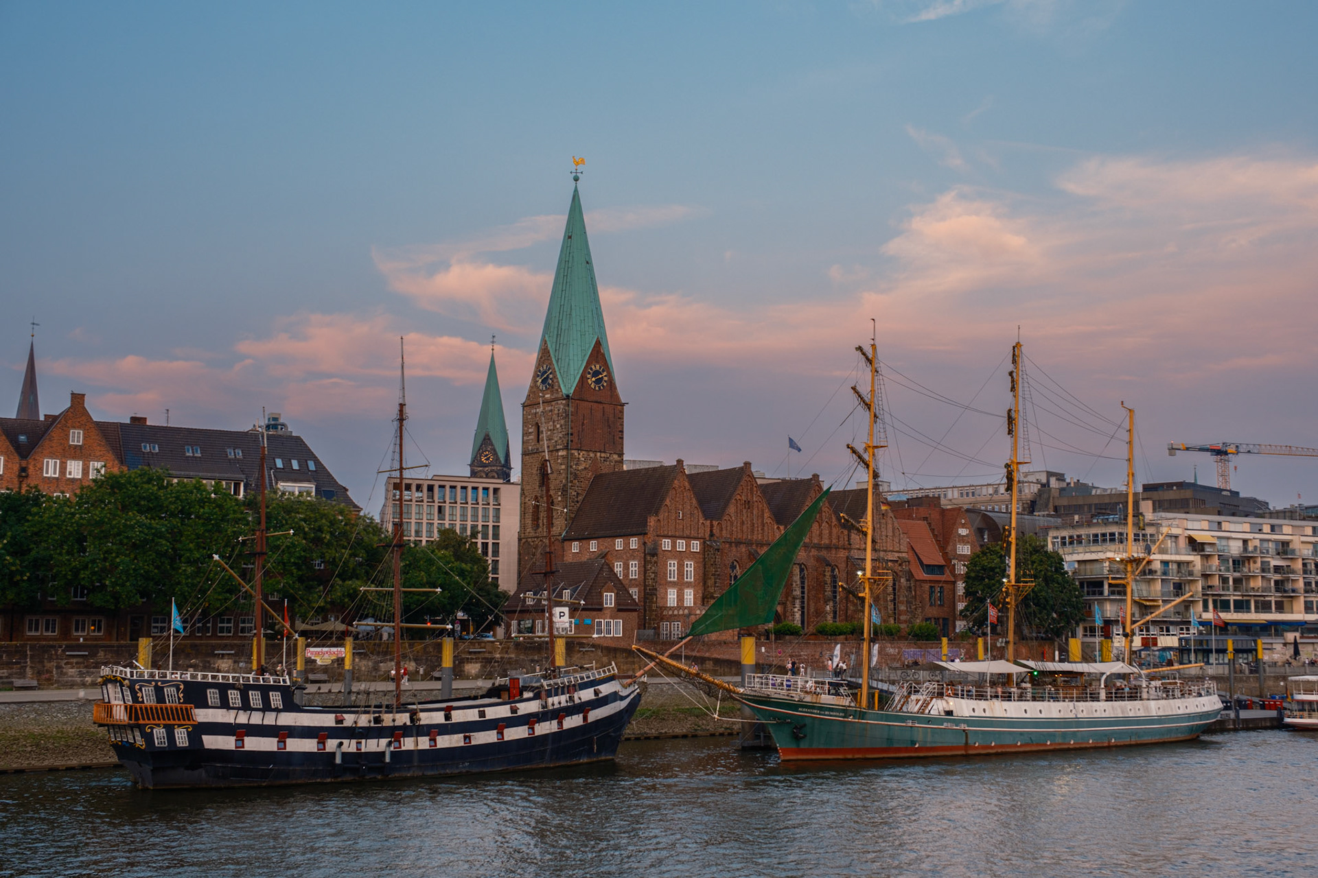Am unseren ersten Abend flanierten wir entlang der Weser Promenade, der sogenannten Schlachte. Dort verbrachten wir den Abend bei sonnigen Wetter auf der Außenterrasse eines Brauhauses.