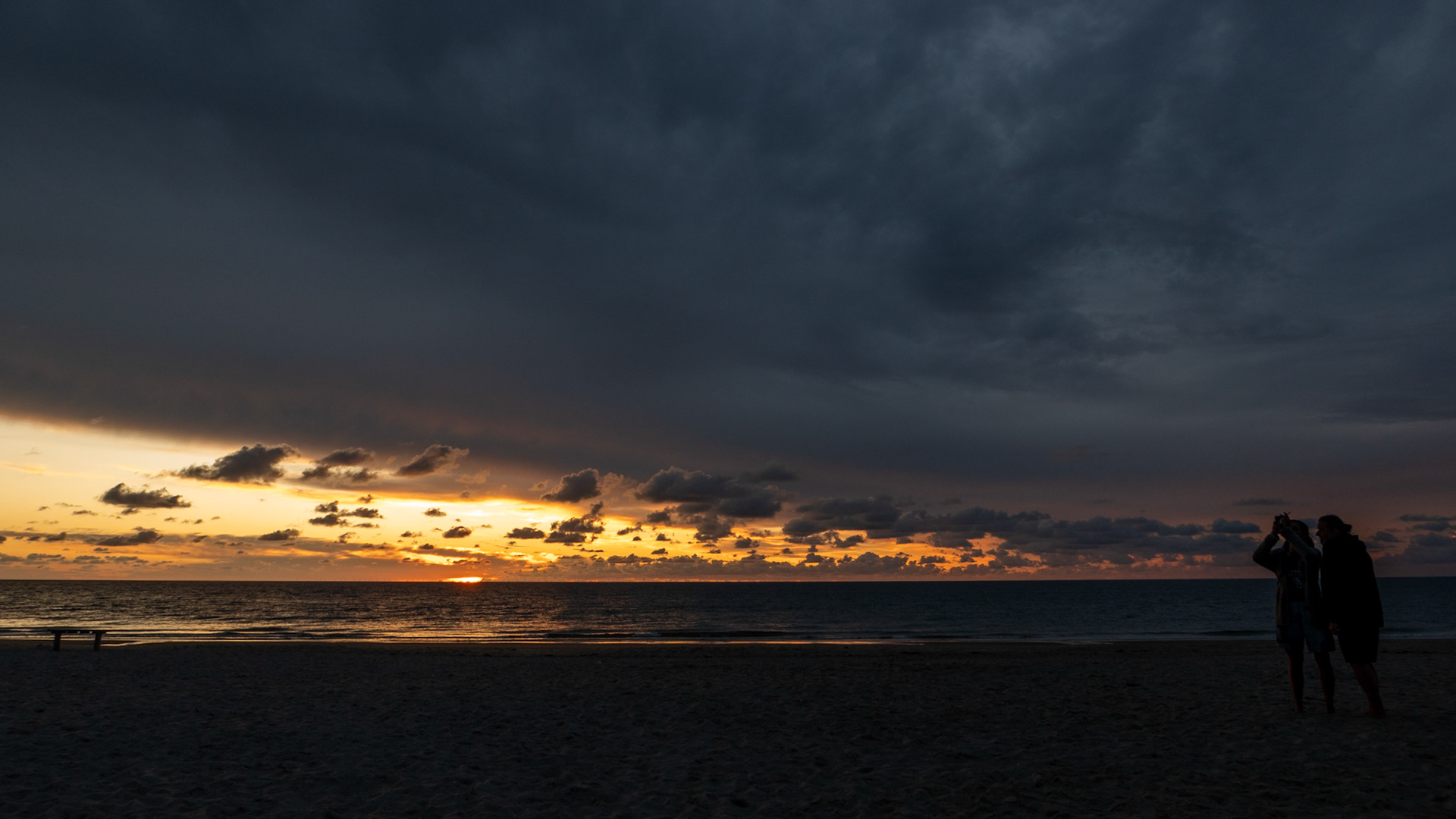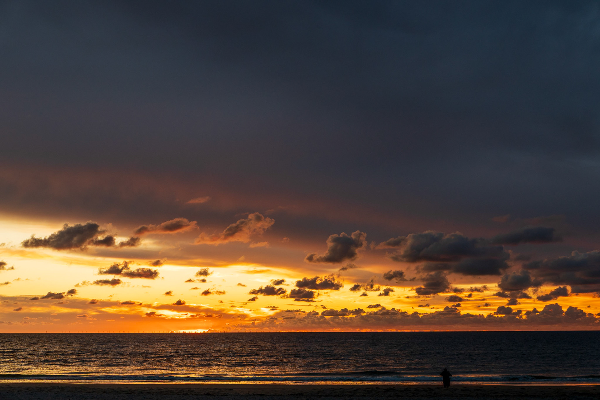 Schon am frühen Abend zieht es Spaziergänger, Urlauber und Einheimische an den Strand, um dieses Schauspiel zu erleben. Das Licht verändert sich mit jeder Minute – von hellem Gold über warme Orangetöne bis hin zu einem tiefen Rot, das schließlich im Meer versinkt. Der Horizont wirkt dabei unendlich, und die Wellen reflektieren die Farben wie flüssiges Glas.